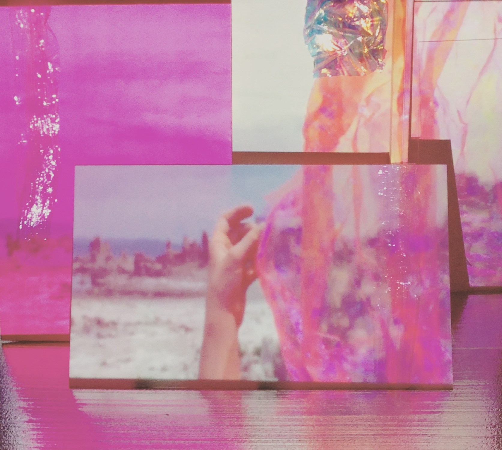 Filmed at Mono Lake, choreographed and exploratory movement fill the screen-space with light variations and movement. Iridescent material is lifted over head, flipped, tilted, and rotated. The sun shines through the material at various angles, revealing a multitude of changing colors. The iridescence is metaphorical of a “simultaneity of meaning” and a layered existence.